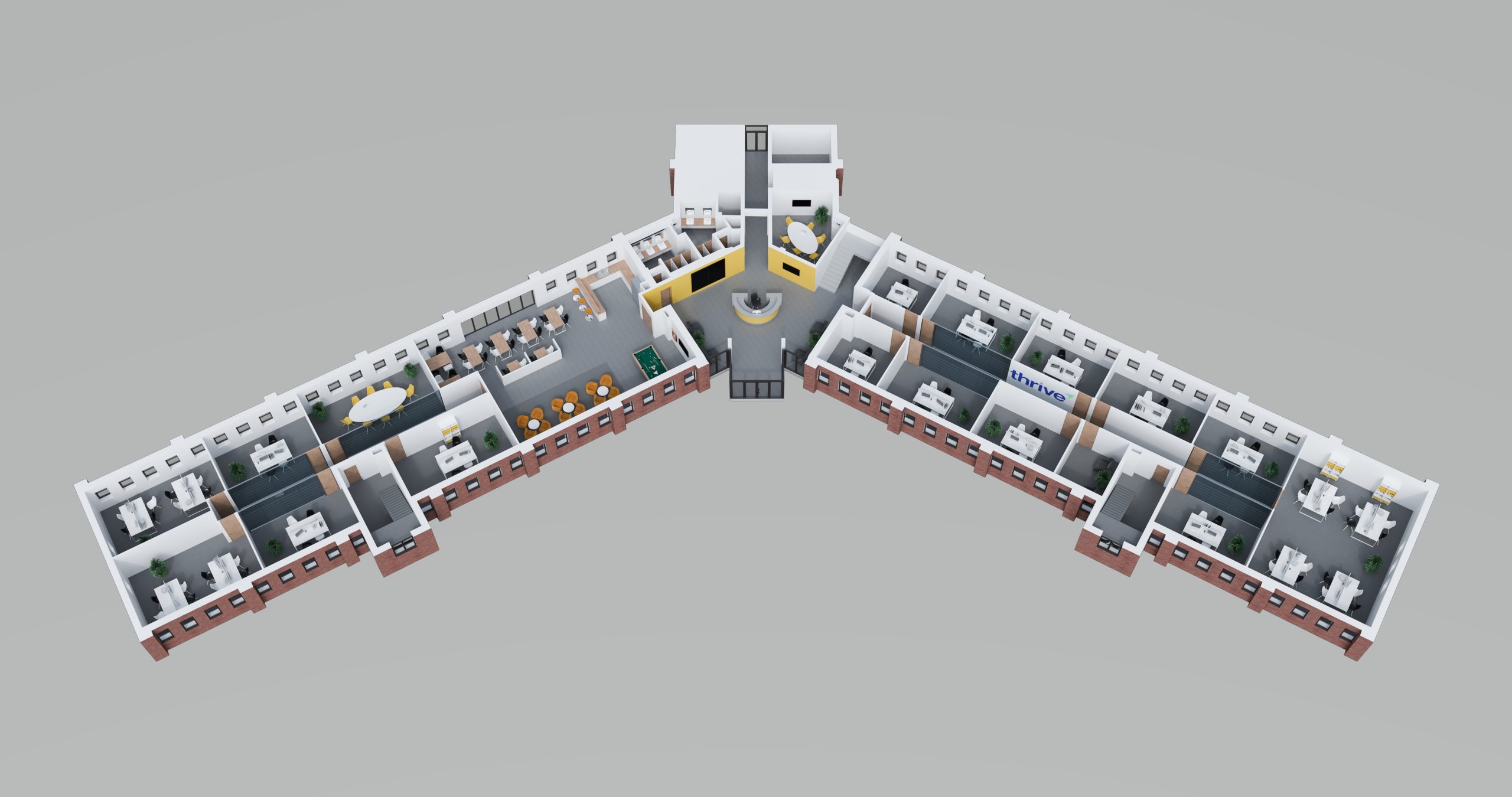 Foundry House was not only designed to offer great office suites, but to provide stunning and vibrant communal areas and facilities to enhance the whole working environment experience. Modern meeting rooms offer all the latest technology including Skype and conferencing facilities along with complimentary tea and coffee for the more formal meetings and for the less formal meetings you could use a more social setting and take advantage of our fantastic break out area. This break out area is also a great place to network and grab a coffee with other Thrive members whilst taking that much needed respite from the pressures of work. For those pleasant summer days why not work outside in our garden area and take advantage of our external WiFi.